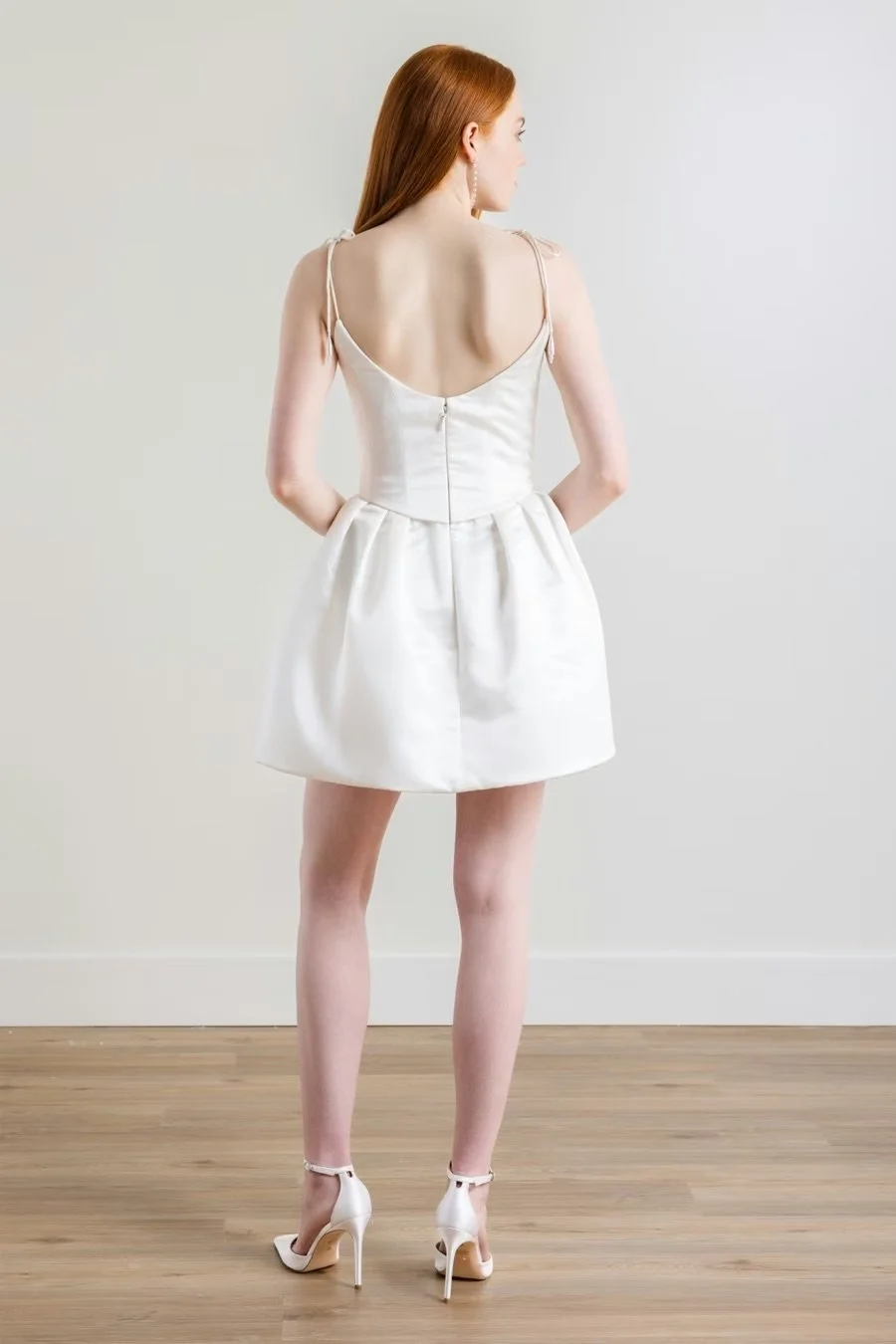 From the precious pearl beading across corseted bodice to the modern dome, pleated skirt - she is everything you want and more. Perfect for your reception or after party or even a Bachelorette night out. The straps are self-tie so you have option to tie however you like!